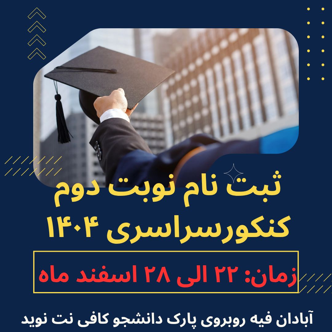 ثبت نام: از 22الی 28 اسفند1403 و 16الی 19 فروردین 1404